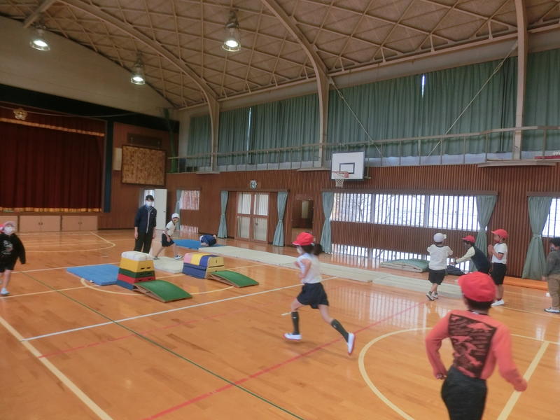1・2年生は体育「跳び箱・マット運動あそび」を学習していました。跳び箱の跳び方も、随分上達していました(^^)/