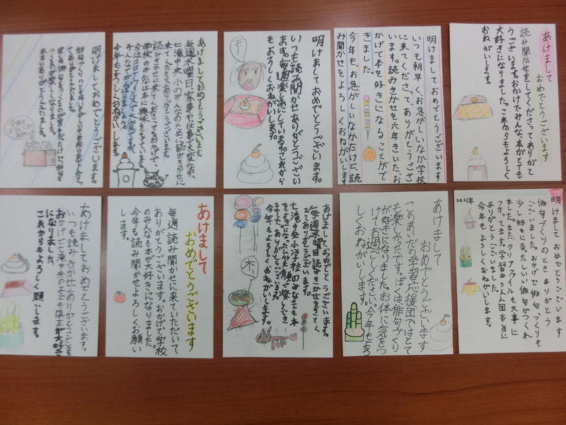 5年生は、今年、本校がお世話になった地域の方々に年賀状を書いていました。この取組は本校が地域との絆を深めるために毎年行っている取組です。6年生も気持ちを込めて、地域の方にお礼の年賀状を書いていました(^^)/