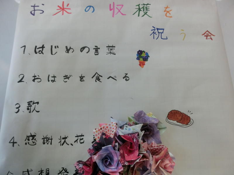 5年生は、米づくりの学習でお世話になった川口勝行さん、吉田髙之さん、藤本こずえさんをお迎えして、「お礼の会」を開催しました。5年生が収穫した「もち米」を使って、心を込めて作った「おはぎ」でおもてなしをしました。感謝の気持ちをしっかり伝えることができました。川口さん、吉田さん、藤本さん、田植えから稲刈り指導などなど・・・大変お世話になりました(^^)/