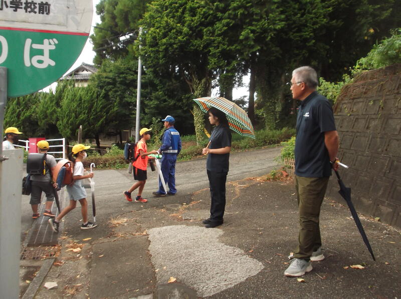 地域の方々に見守られ、子供たちは笑顔で登校できました。