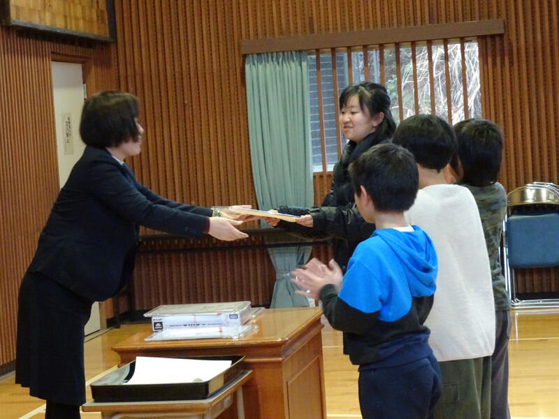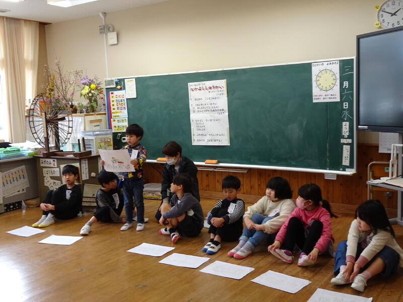 入学当初は、文字を読むのもたどたどしかったのですが、今は黙々とテストに取り組む姿が見られました。この1年間でとても成長した1年生です。最後まで頑張った1年生です。