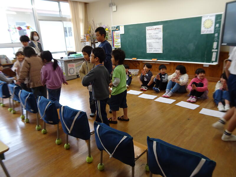 ド・ド・ドーなど、曲に合わせた演奏です。互いの演奏を見せ合って拍手を送る姿も見られました。みんなで一つの音楽を楽しく作り上げています。