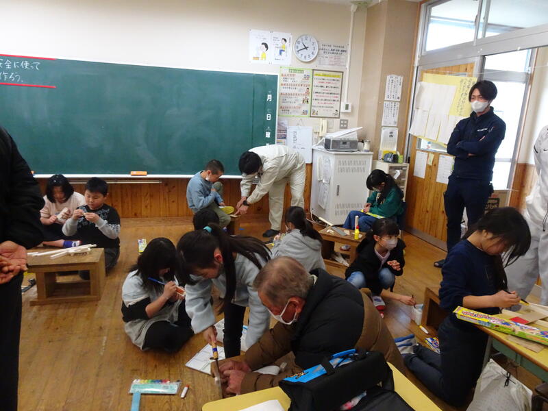 工作をしていた3年生には糸のこぎりの引き方を教えてくださる姿も見られました。