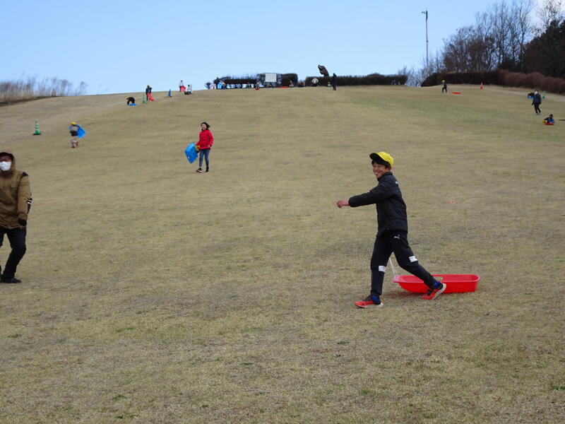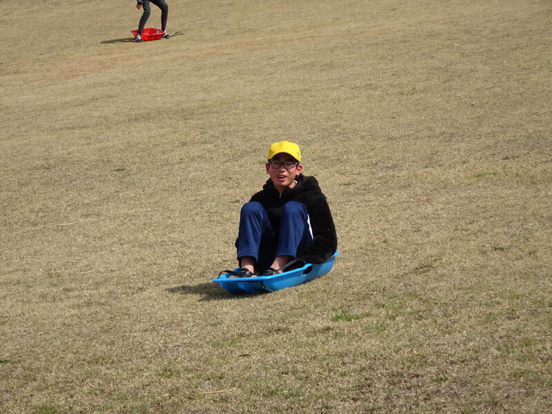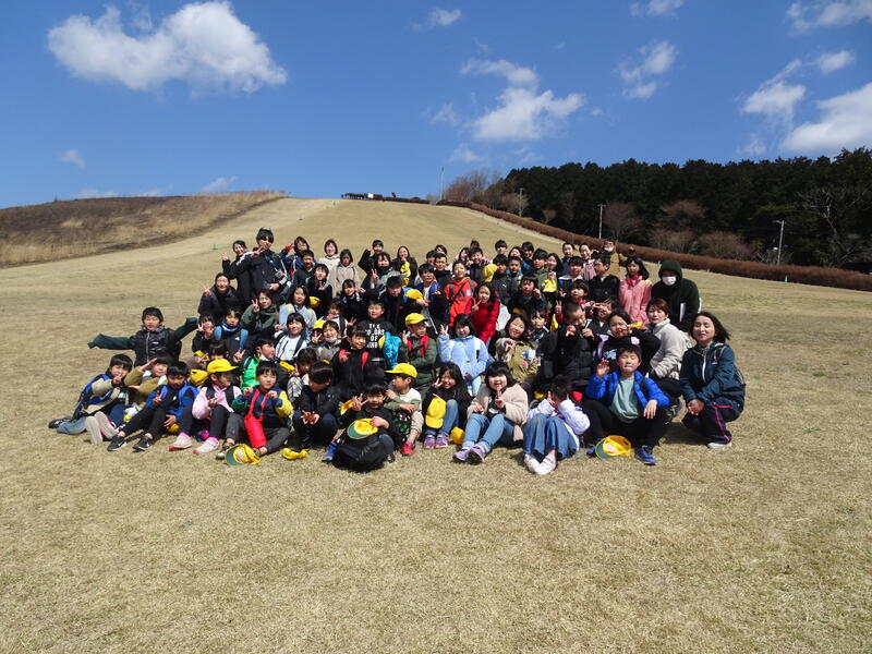 また、バスで吉無田高原に移動し、草スキーやサッカーなどをしました。風が強く少し寒かったのですが、子供たちは楽しく活動できました。思い出に残る送別遠足になりました。
