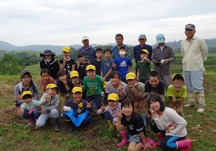 2,3年は上野体験農園で「たまねぎの収穫」をしました!昨年、11月に自分たちで植えた玉葱です。上野地区の松下さん、宮川さん、栗本さん、山田修史さん、山田竜登さんが堀り方やまとめ方を教えてくださいました。みんなでよく働き、たくさん穫れた玉葱は学校へ運んで、体育館横に吊してもらいました。今後、給食で使ってもらい、全校児童でいただきます!