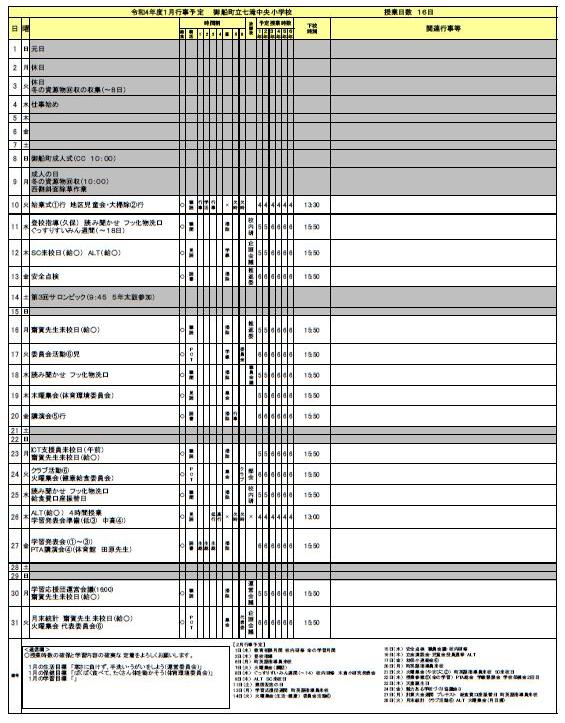 1月の行事予定表をアップします。正式な決定については、学級通信でご確認ください。