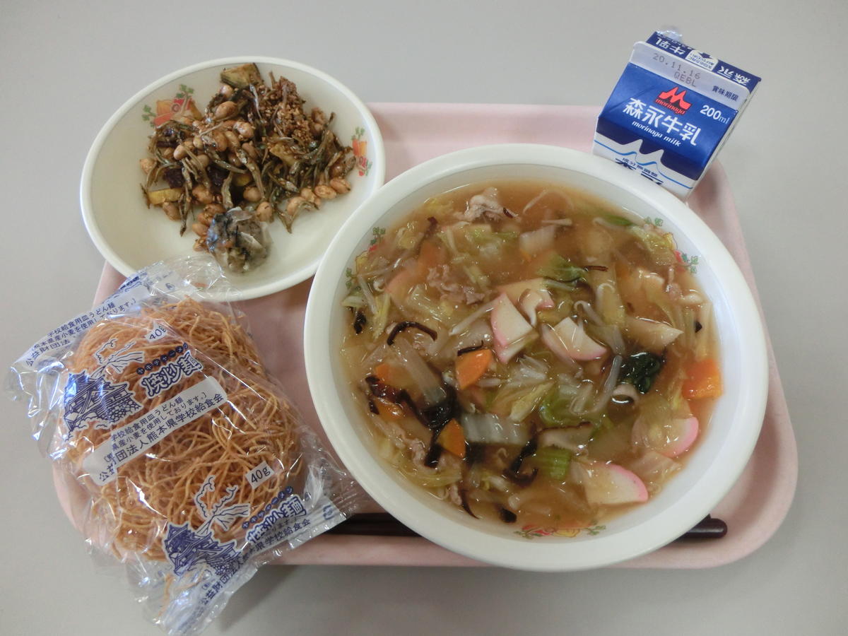 | パリパリやきそば ミックスかりんとう ひじきしゅうまい 牛乳 |