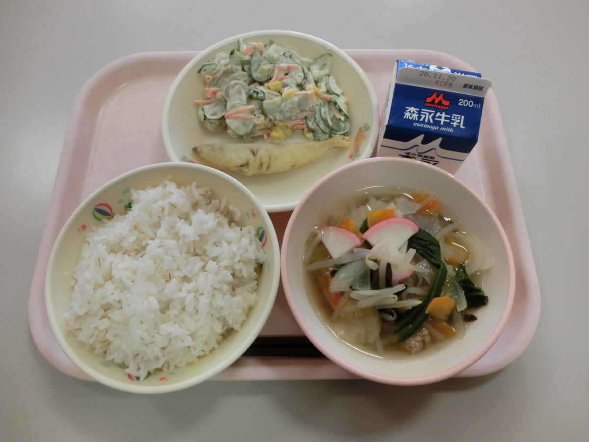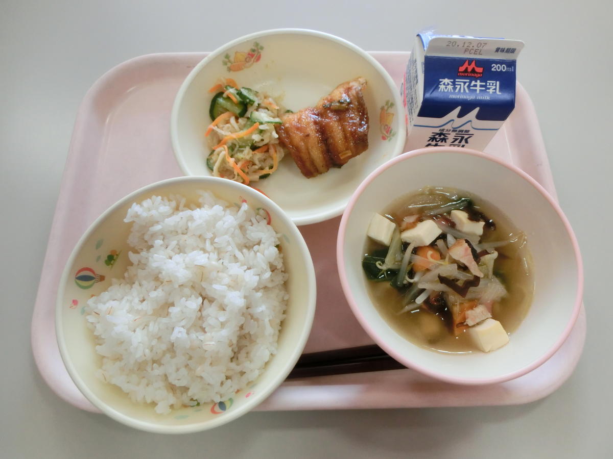 | むぎごはん チンゲンサイのちゅうかスープ さかなのなんばんづけ 牛乳 |