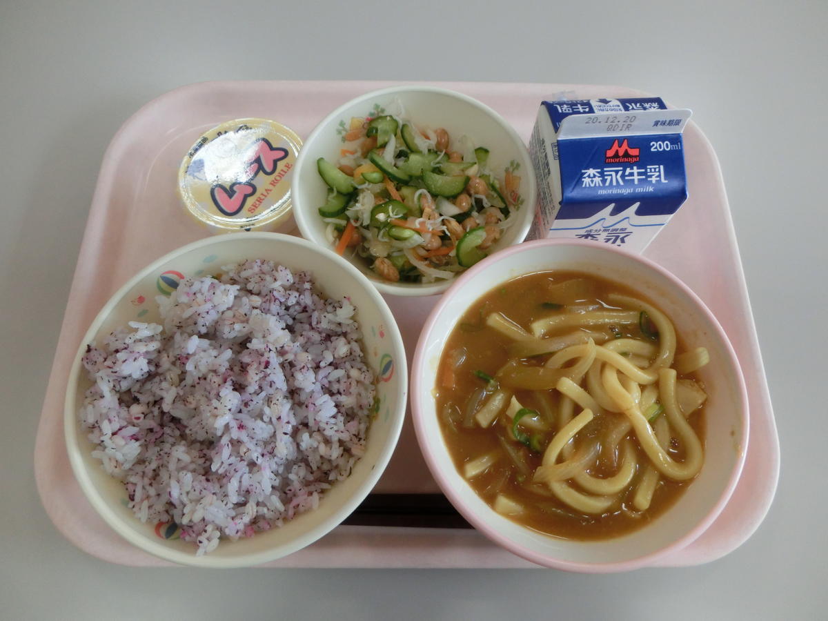 | ゆかりごはん カレーうどん じゃこナッツサラダ ムース 牛乳 |