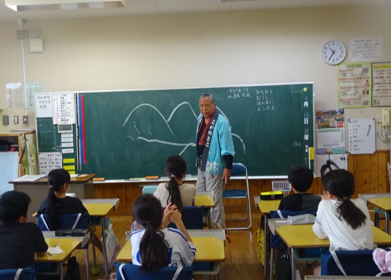 4年生は、寅舞保存会の方々に来ていただき、寅舞について話を聞きました。