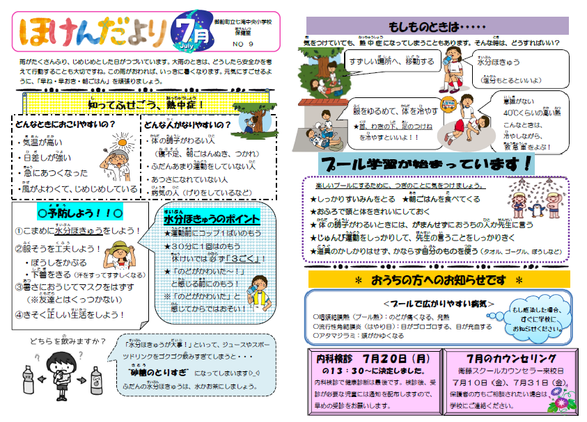 夏休みも生活リズムをくずさないように気をつけて、元気に過ごしてくださいね。