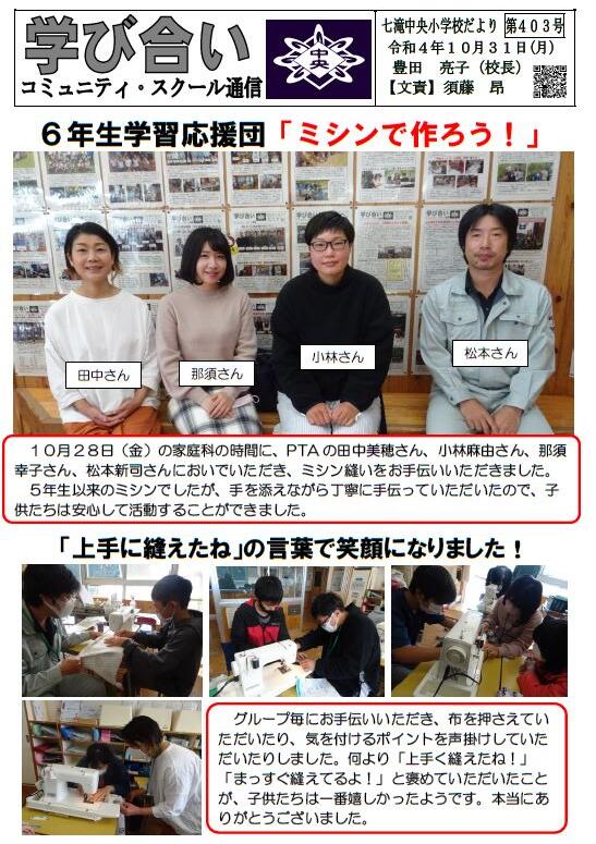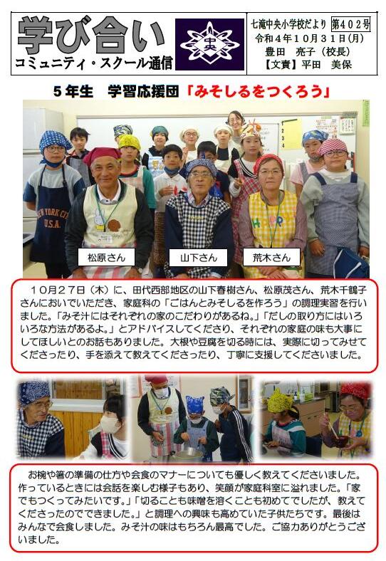 学校だより407・408号をアップしていませんでしたので、掲載します。