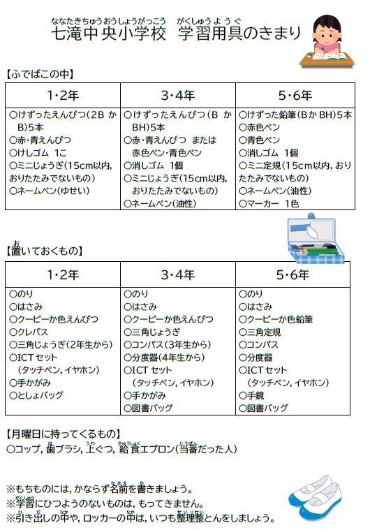 学習用具を購入する際に、お子さんとご確認の上、準備をお願いします。