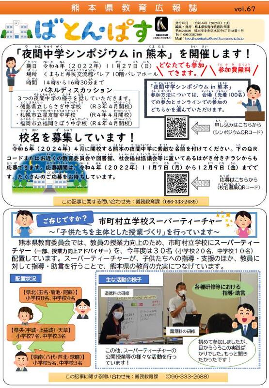 熊本県教育広報誌「ばとんぱす Vol.67」を更新しました。
