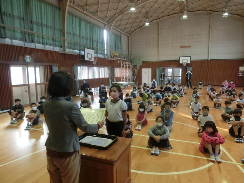また、「熊本県読書感想画コンクール」「上益城郡版画展」「ぐっすりすいみん週間スペシャリスト賞」「ぐるぐるランニングで頑張ったで賞」の表彰もありました。