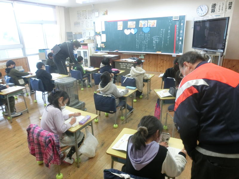 1年生は国語で「漢字スキル」のミニテスト中でした。本校では、全学年統一した漢字ドリルを使って、学校総体として「漢字ミニテスト」を実施。子どもの頑張りを全職員で励まし応援する取組を行っています。1年生にとっては2学期から習い始めた漢字です。がんばってください(^_-)-☆
