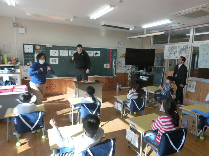 1・2年生は体育でドッジボールをしていました。また、いつも「忍者修行」でお世話になっている鋤崎澄夫先生に、当日見せることができなかった運動会のダンスを披露していました(^^)/