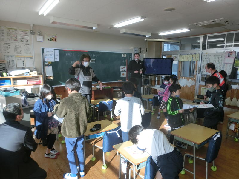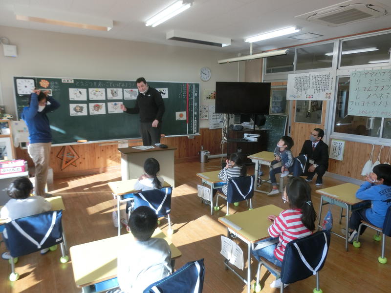 1年生と3年生は外国語の学習をしていました。クリス先生と木下博志先生(教育委員会英語担当指導主事)に、指導のお手伝いに授業に入っていいただきます。1年教室では「グォリーラ」「ルァイオン」など、ネイティブな発音が響いていました。3年教室では、お手伝いの先生を含めて5人の先生が教室に入ったため、担任の先生曰く「おじさん率の高い教室でした」(担任回想)とのこと・・・改めて本校の手厚さに感動。当時の状況をネイティブに発音すれば、「ファイヴ アンクゥーズ」(;^ω^)
