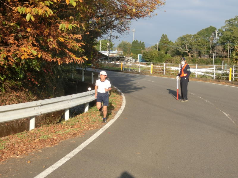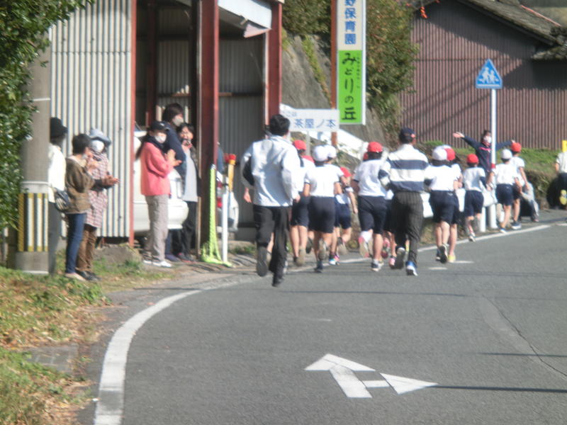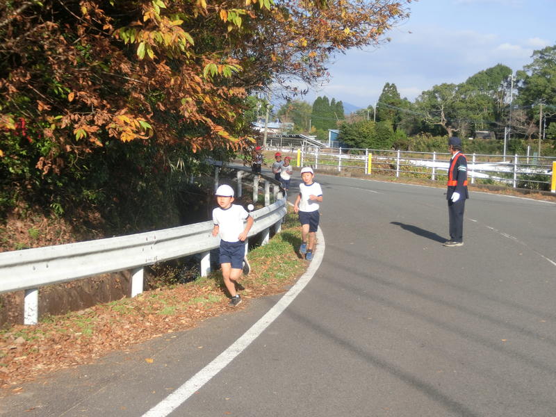 持久走大会の試走をしました。山本昌信巡査部長(御船警察署上野駐在所)、村上久雄さん(田代東部地区交通安全協会支部長)、川口勝行さん(学校運営協議会会長)が試走の見守りをしてくださいました。子供たちは12月6日(日)の持久走大会に向けて、師走の街道を力強く走っていました(^^)/