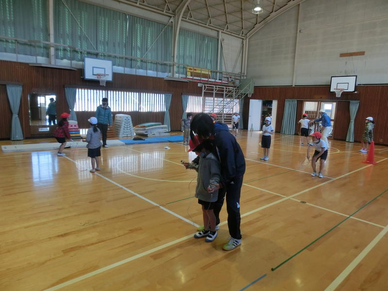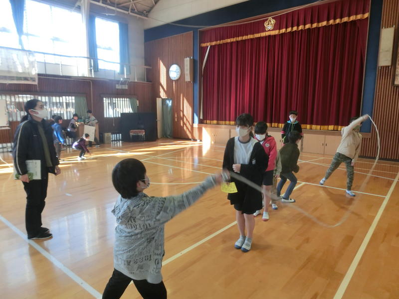 1・2年生は体育で「なわとび」の練習をしていました。今日はどれだけ跳べるのか確かめながら練習をしていました。本校では4年前から、全学年統一したなわとびカードを使って、学校総体としてなわとび運動の充実に取り組んでいます。共通のなわとびカードを使い、なわとび大会を実施することで、下級生は上級生を目標に追いつき追い越せと頑張り、上級生は下級生のお手本になるようにまた負けないように練習を頑張ります。今年もみんなの「なわとび」の上達が楽しみです(^^)/