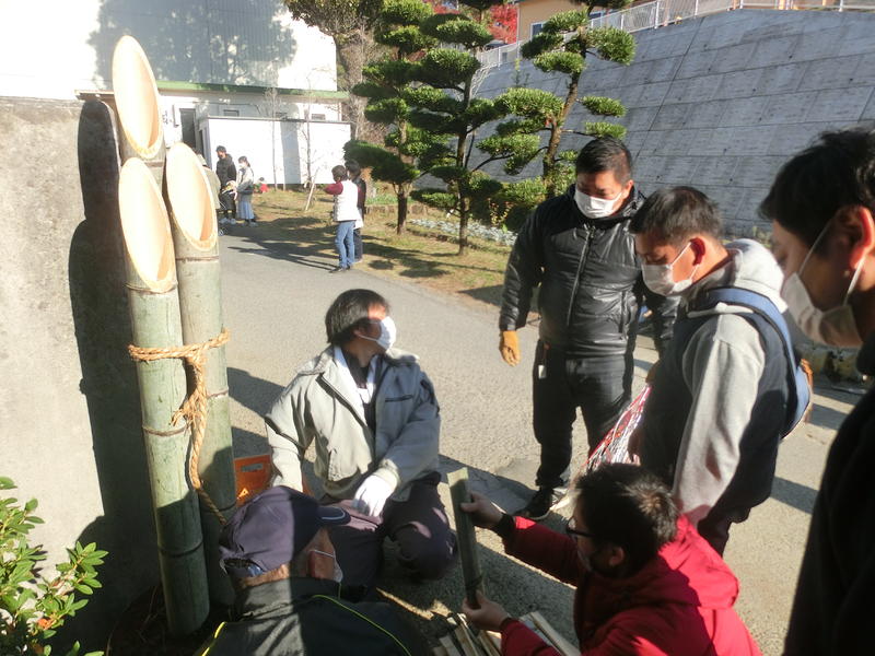 PTAで「門松づくり」をしました。野口大樹PTA会長を中心に、門松を作っていただきました。お正月に向けて、校門の両脇に立派な門松を立てることができました(^^)/