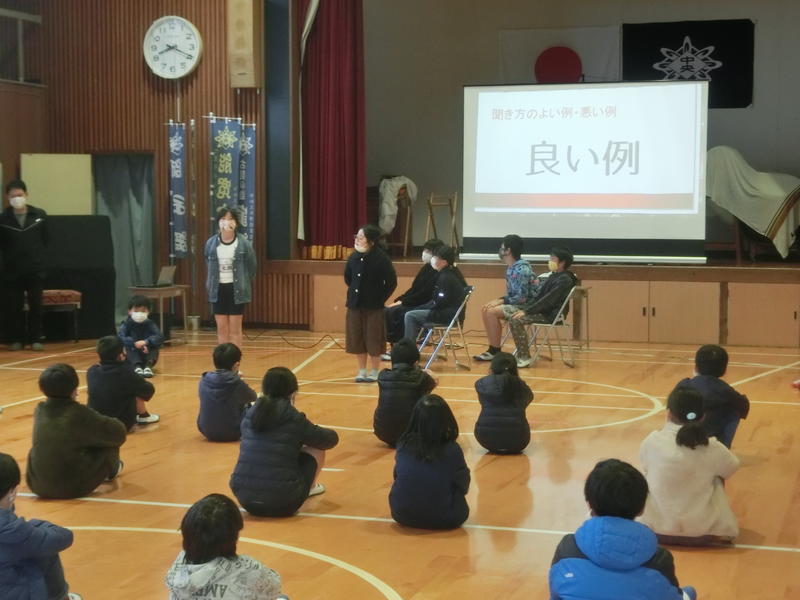 火曜集会では、放送委員会から「放送を聞く時のマナー」等について発表がありました。正しい例と悪い例をミニミニ劇を使って説明をしました。放送をしっかり聞けるようにしましょうね(^^)/
