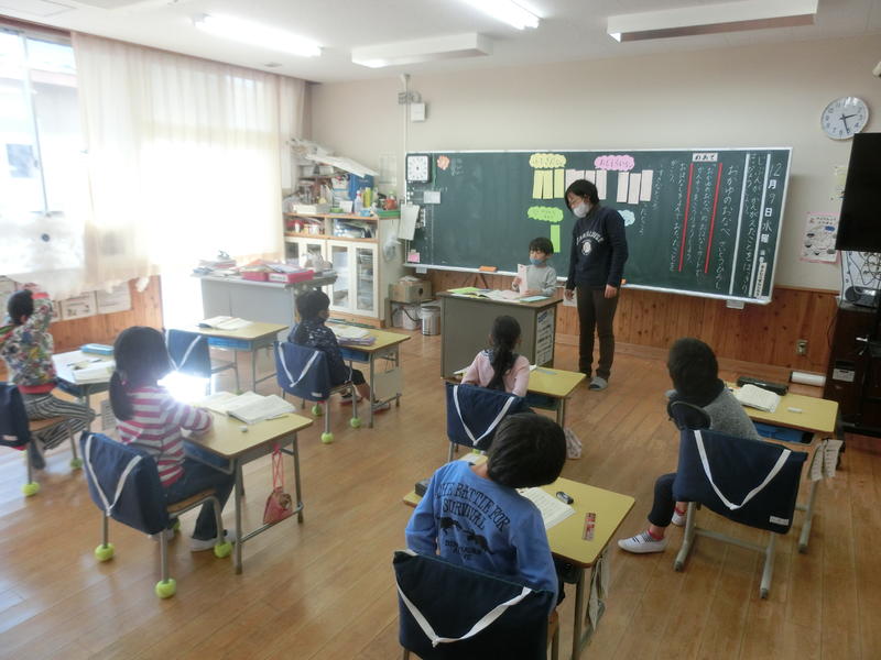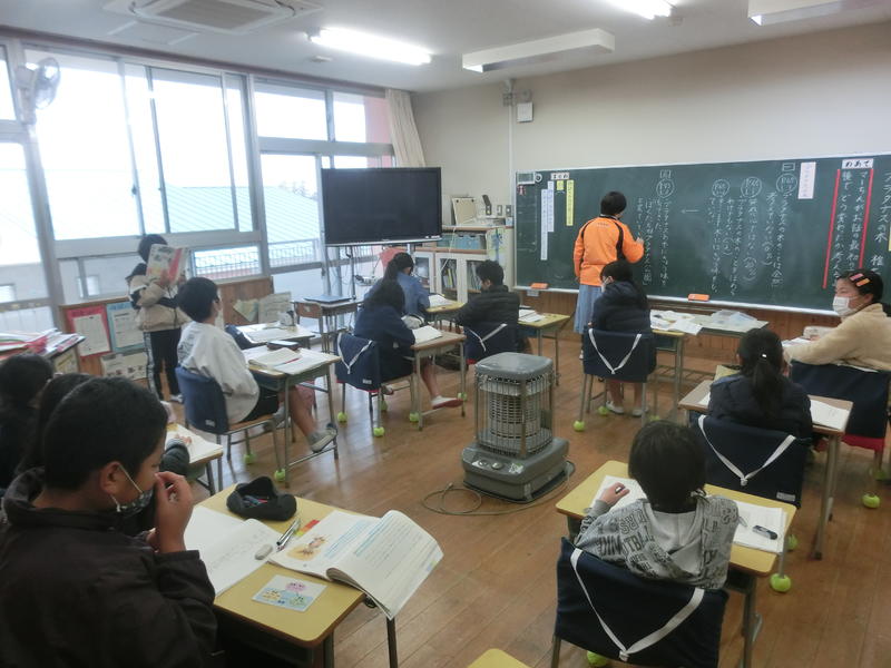 5時間目は、1・4・5年生が国語をしていました。1年は「おかゆのおなべ」、4年は「プラタナスの木」、5年は「やなせたかし~アンパンマンの勇気」です。どの学年も、しっかり考えて、発表することができていました(^^)/