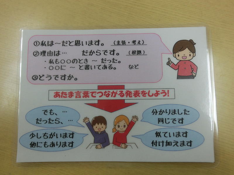 4年生は国語「プラタナスの木」の学習をしていました。「発表の話型」を使って、しっかり話合い活動ができていて感心しました(^^)/