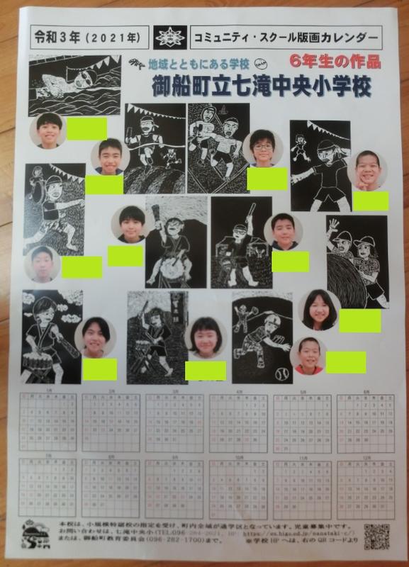 6年生は「版画カレンダー」の配付準備をしていました。「版画カレンダー」の作成と配付は、本校が開校してから、学校と地域の絆を深めるためにずっと続けられてきました。お世話になった方や、校区にお住いの独居老人のお宅に、合計300枚をお届けしています。経費は御船町社会福祉協議会様、青少年健全育成会議七滝中央支部様にご支援していただいています。子供たちが作った版画カレンダーを飾って、よいお年をお迎えください。校区の皆様の健康とご多幸を心よりお祈り申し上げます(^^)/