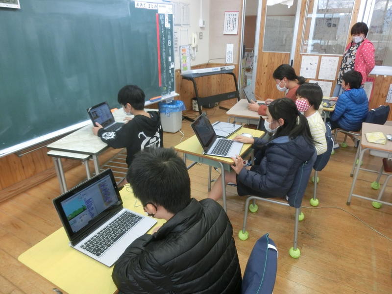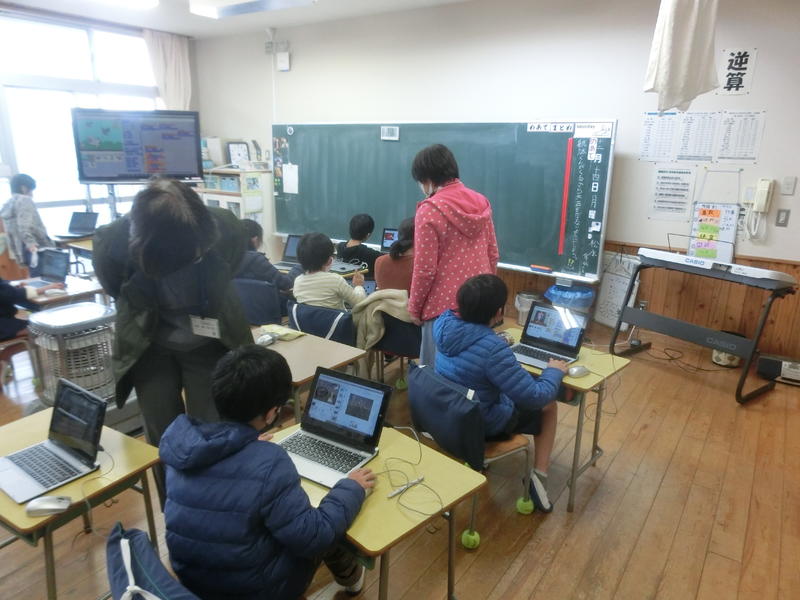 4年生はタブレットパソコンを使ってプログラミング学習をしていました。プログラミング的な論理思考を使って、工夫した作品を作り上げていました(^^)/