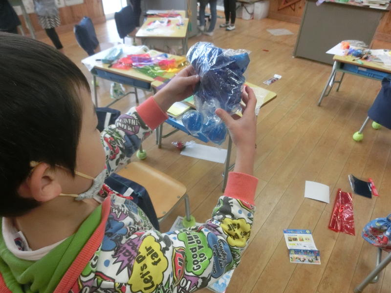 1年生は図工「ひかりのくにのなかまたち」を学習していました。形や色を工夫して、色セロハンを貼り合わせ作品づくりをしていました。みんなステキな作品ができあがりました(^^)/
