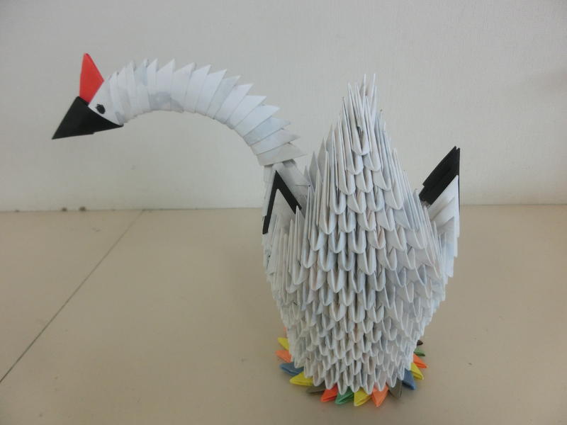 千羽鶴を心を込めて作りました。折鶴を並べて「平和」の文字が表れるようにしました。私たちの「平和」への願いとともに、長崎に大切に届けます!