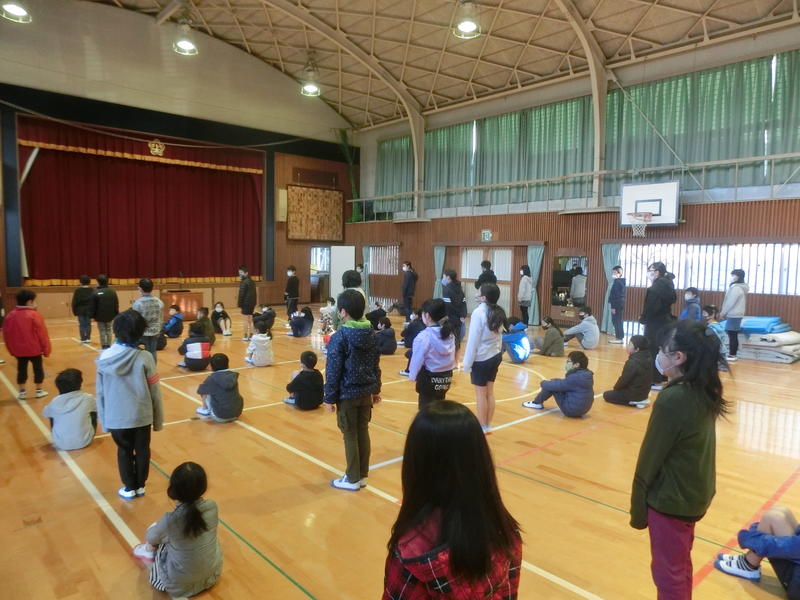 火曜集会は、「防災・安全」についてのお話がありました。地震が発生したときの、正しい行動や身の守り方について学びました。ダンゴムシポーズもばっちりですね(^^)/