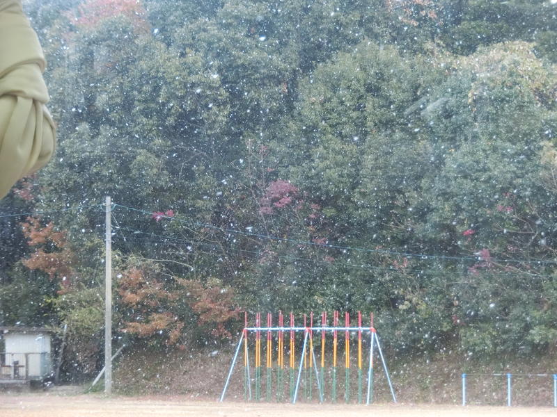 朝から小雪がちらついていました。浅の藪地区はおととい、昨日も雪が降ったとのこと。子供たちは雪を眺めながら登校していました(^^)/