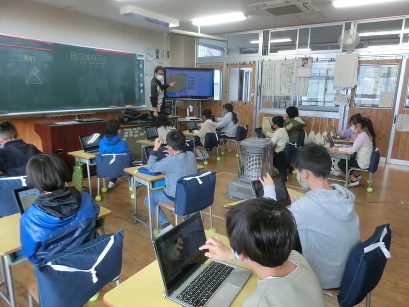 3年生はタブレットノートパソコンを使ってプログラミング学習をしていました。まっすぐ進む、その後、90度回転する・・・などプログラミング的思考を使って、楽しく学習していました(^^)/