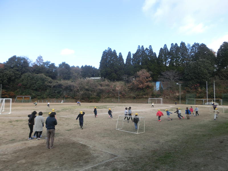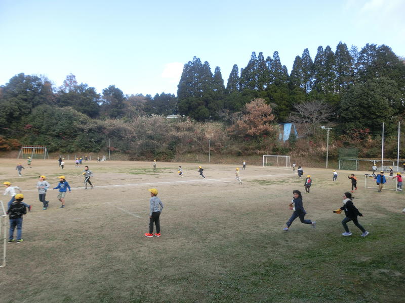お昼休み!寒さに負けずたくさんの子供が外遊びを楽しんでいました。今日は「学年ふれあいデー」で1年生と4年生が一緒に「ケイドロ」をして遊んでいました(^^)/