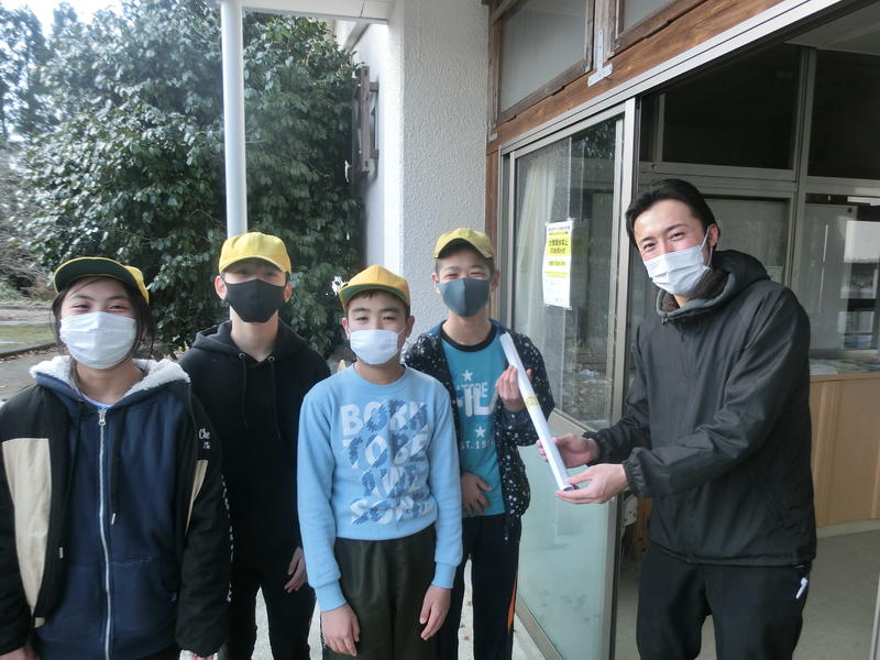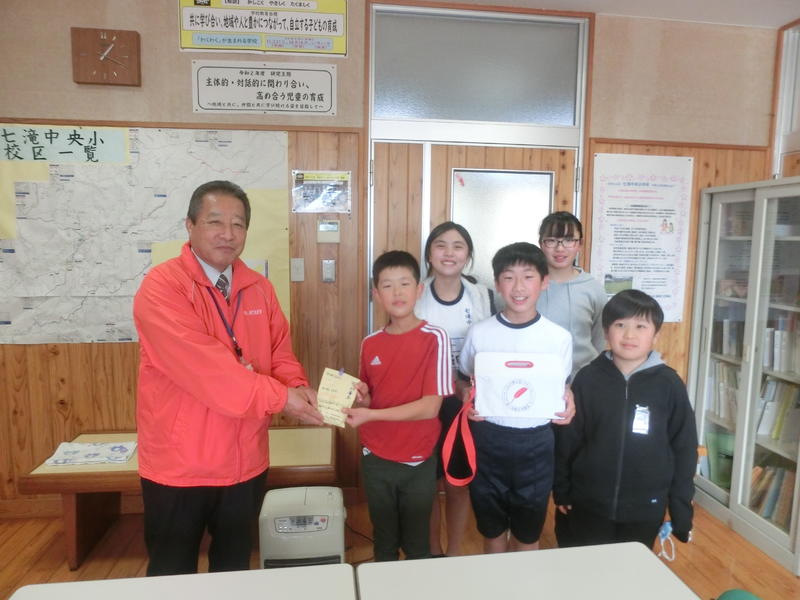 「赤い羽根共同募金」を御船町社会福祉協議会様にお渡ししました。児童会が朝から募金活動を行い、集めたお金です。募金活動にご協力していただき、大変ありがとうございました(^^)/