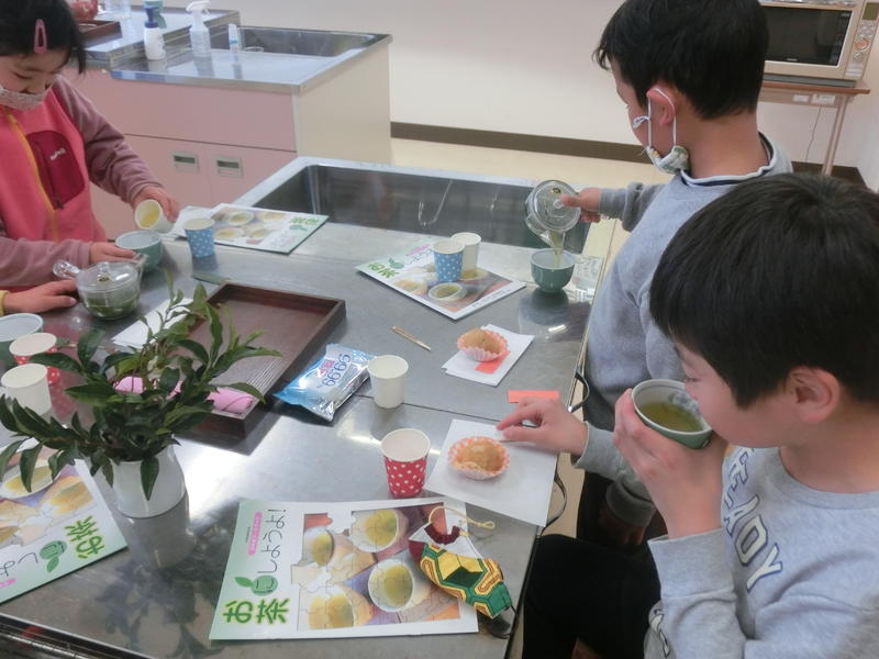 2・5年生は「お茶の授業」を受けました。大塚美佐子さんと野口大樹さん(日本茶インストラクター協会)を講師にお招きして行いました。お茶のおいしい入れ方や作法、お茶と健康やおもてなしの心まで詳しく学ぶことができました。お茶の学習を通して「和の心」も深く学ぶことができました。子供たちは「急須で入れたお茶はうまみがある!」「今日から毎日飲みます!」と、おいしいお茶を味わっていました(^^)/