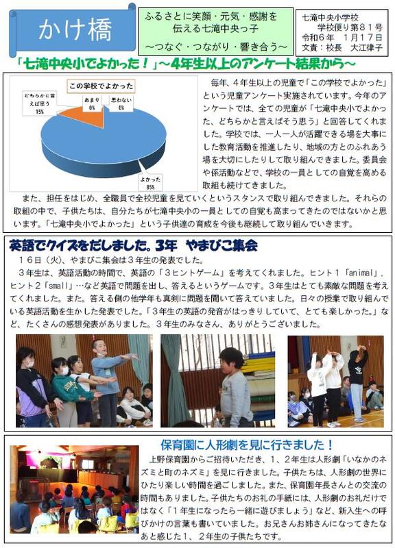 学校だより(1/31号)を更新しました。どうぞご覧ください。