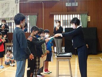 9日(木)は木曜集会で「計算大会」「漢字スキルマスター」「Dx-NEXT夢コンテスト」の表彰を行いました。それぞれによく頑張った証です。前に出て賞状や認定証を受け取る時、どの子も緊張気味でしたが、渡す際にCongratulation!と声をかけると、はにかんだ笑顔でThank.と答えてくれました。Dx-NEXT夢コンテストでは、熊本日日新聞社賞という素晴らしい賞に皆から大きな拍手をもらいました。
