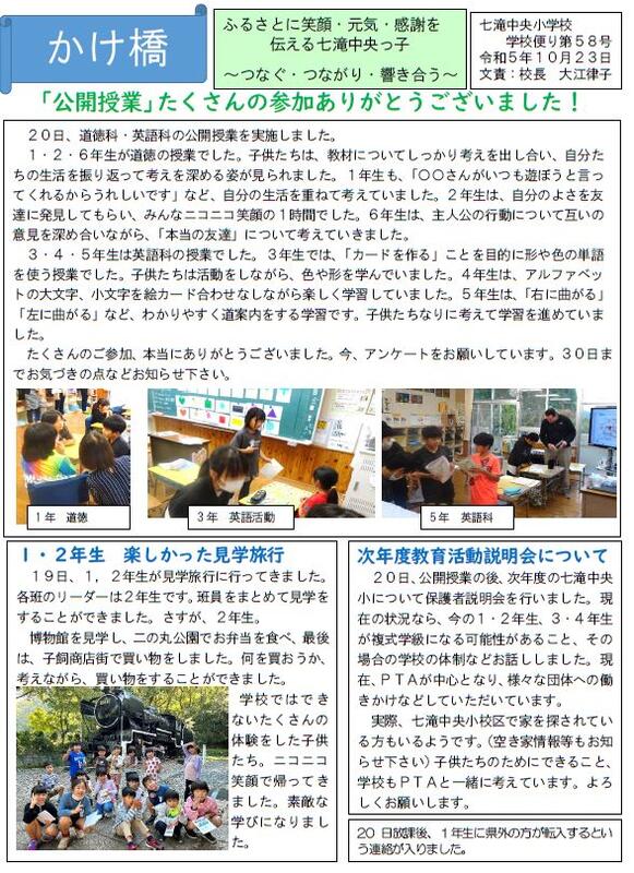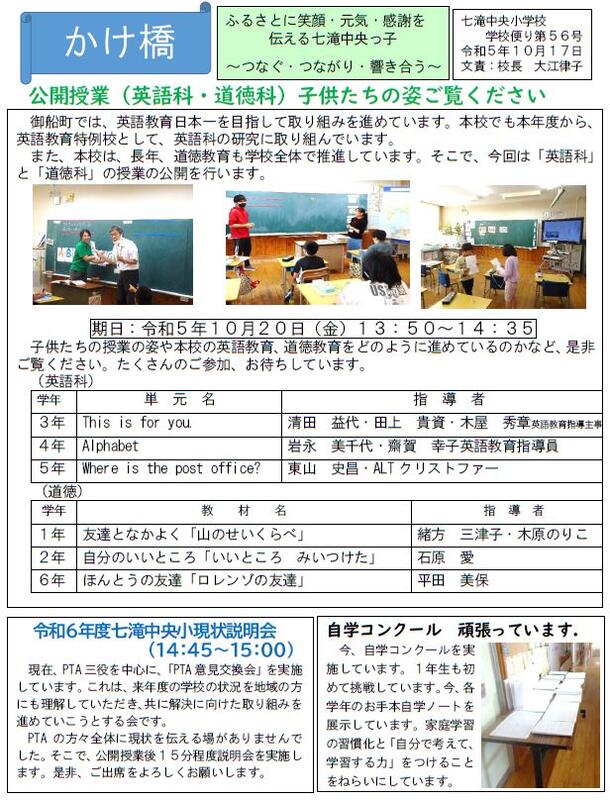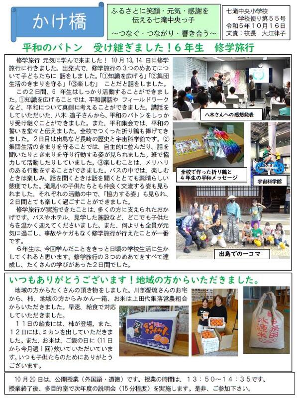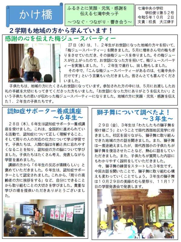 学校だより(10/20号)を更新しました。どうぞご覧ください。