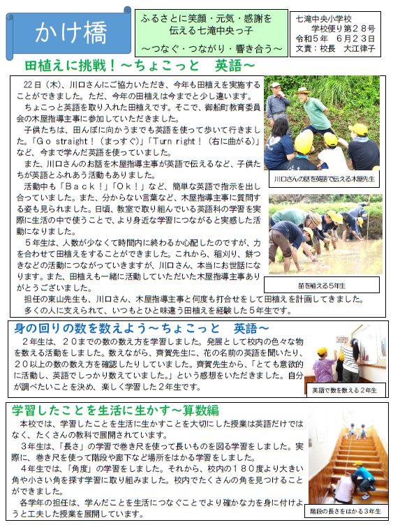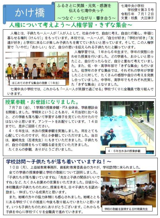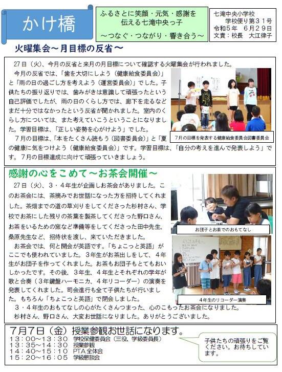 さて、学校だより(7/4号)を更新しましたので、どうぞご覧ください。
