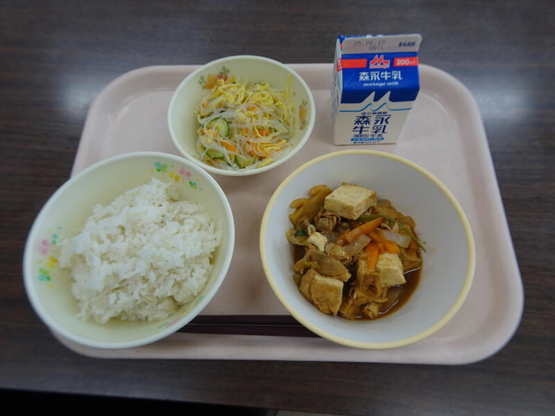 本日のお品書き:麦ごはん・家常豆腐・中華 あえ・牛乳