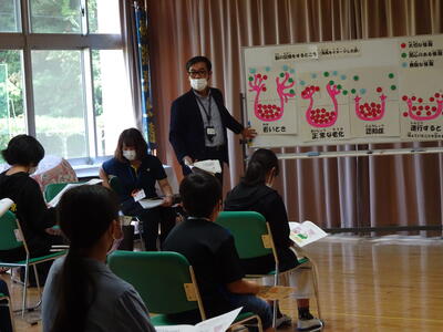 4年生は、「遠足の朝」というお話で正しいと思うことを自信をもってやる心の勉強をしました。