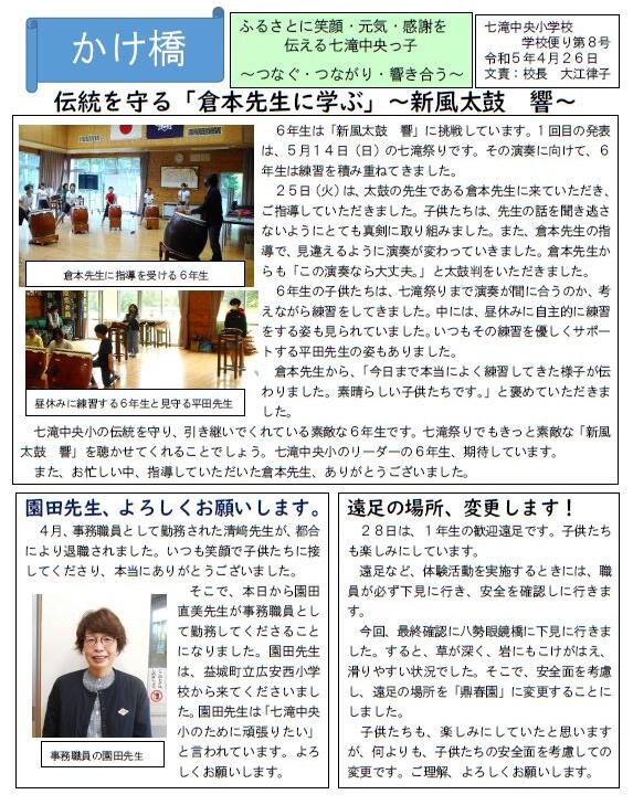 学校だより(5/8号)を更新しました。どうぞご覧ください。