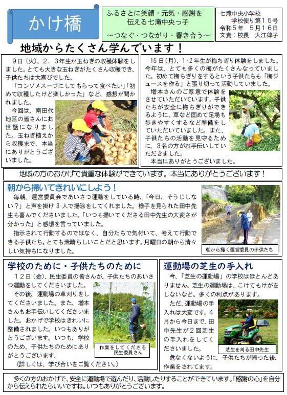 学校だより(5/15号)を更新しました。どうぞご覧ください。