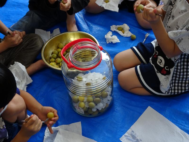 1、2年生は、先日収穫した梅の実で梅ジュース作りをしました!!