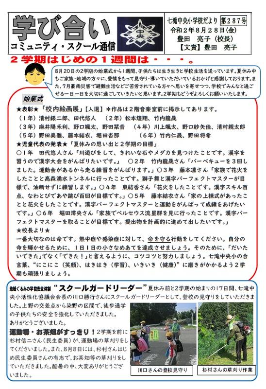本年度は臨時休校分の授業時数確保のため1学期の終了が8月5日(水)、2学期のスタートが8月20日(木)でした。暑い夏は、感染症対策に加え熱中症対策にもしっかり取り組みました。お昼休みや体育の授業では計画的に「給水タイム」を設定。ご家庭には毎日の水筒の準備大変お世話になりました。