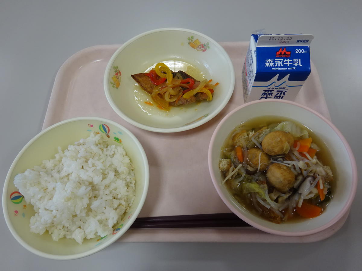 | むぎごはん ちゃんこなべ さかなのなんばんづけ 牛乳 |