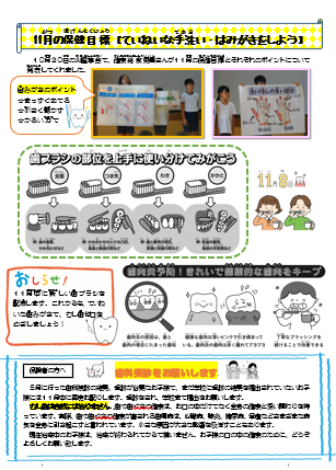 また、11月8日の『いい歯の日』にちなみ、全児童に歯ブラシと、まだ治療が済んでいないご家庭にお知らせを配付しますので、この機会にぜひ受診をお願いします